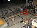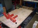 It took him like two days to put this together then it sat in my garage for six years until I got around to doing my part. I bought a sheet of OSB for the deck and added the wheel chock which was given to me by a coworker. The biggest challenge was balancing the roller. That was an entire project unto itself and I’ll make a separate page to show the balancing rig.